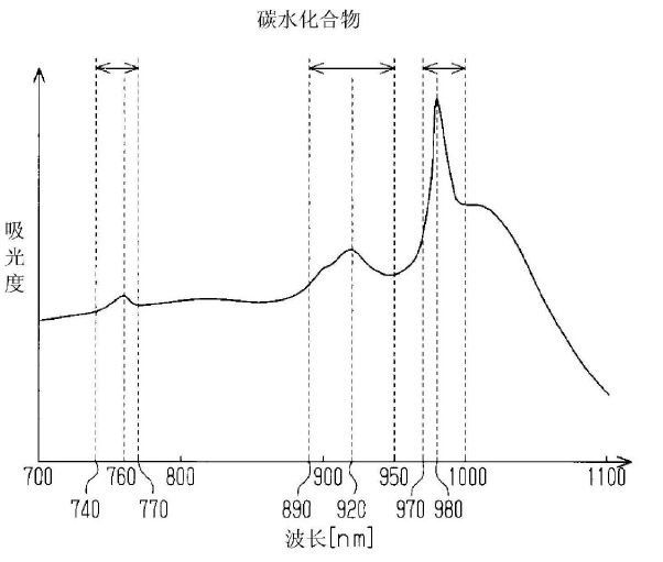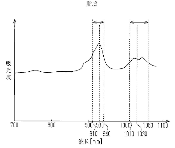 提供一种能够简便地计算卡路里或者成分重量的食品分析产品。食品分析产品(1) 具有发光部(21)、受光部(22) 以及控制部(60)。发光部(21) 向分析对象物(S) 照射包括700nm ~ 1100nm的波长中的至少一部分波长的光。受光部(22) 接收从分析对象物(S) 反射的光。控制部(60) 计算由受光部(22) 接收到的光的吸光度,基于吸光度与卡路里的相关关系以及运算出的吸光度来计算分析对象物(S) 的卡路里等参数。 1.一种食品分析装置,具备:发光部,其向分析对象物照射包括700nm ~1100nm 的波长中的至少一部分波长的光的光;受光部,其接收从上述分析对象物反射的光和透过上述分析对象物的光中的至少一方; 运算部,其运算由上述受光部接收到的光的吸光量;以及分析部,其实施以下动作中的一方:基于吸光量与卡路里的相关关系以及由上述运算部运算出的吸光量来计算上述分析对象物的卡路里;以及基于上述吸光量与食品的成分量 的相关关系以及由上述运算部运算出的吸光量来计算上述分析对象物的成分量。 2.根据权利要求1 所述的食品分析装置,其特征在于, 上述运算部运算由上述受光部接收到的光中的特定波长的光的吸光量, 上述特定波长处于940nm ~ 1020nm、910nm ~ 940nm、890nm ~ 930nm、970nm ~ 1000nm、1000nm ~ 1030nm、1030nm ~ 1060nm、740nm ~ 770nm、1010nm ~ 1060nm 以及890nm ~ 950nm中的至少一个波长范围内。